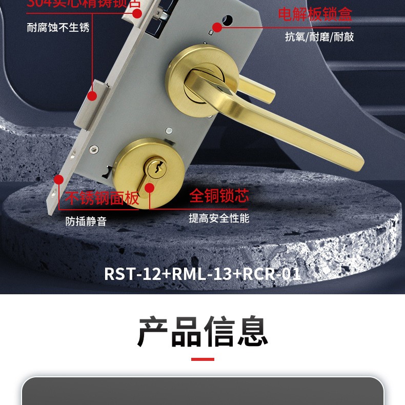 RST-12 金色不銹鋼304分體把手門鎖
